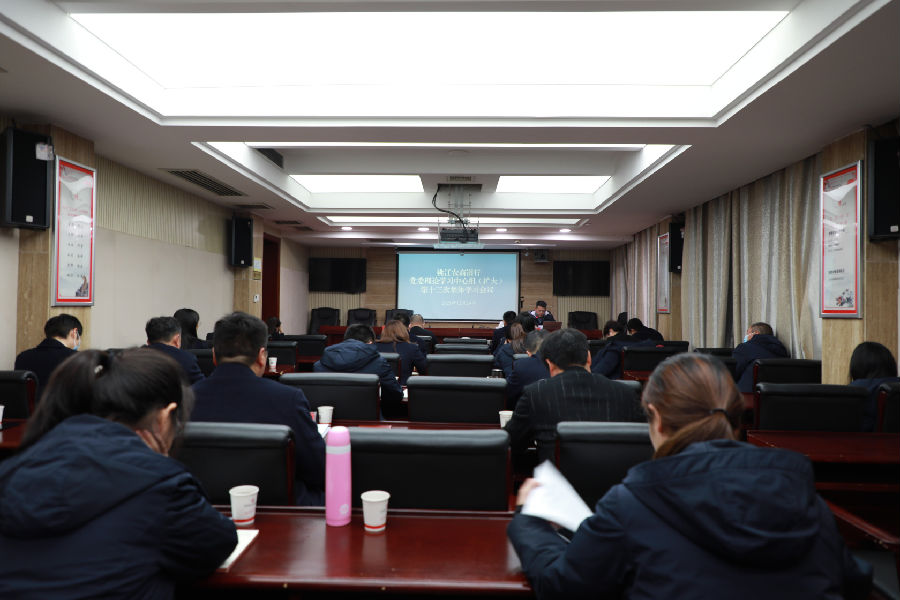 12月24日,桃江农商银行党委书记、董事长黎君辉主持召开党委理论学习中心组(扩大)2021年第十三次集体学习会议,传达贯彻落实党的十九届六中全会和省第十二次党代会精神。行党委成员、部室正副经理参加学习。
