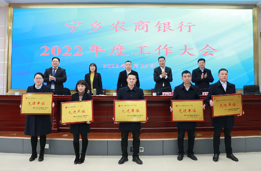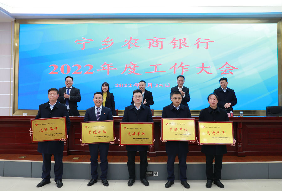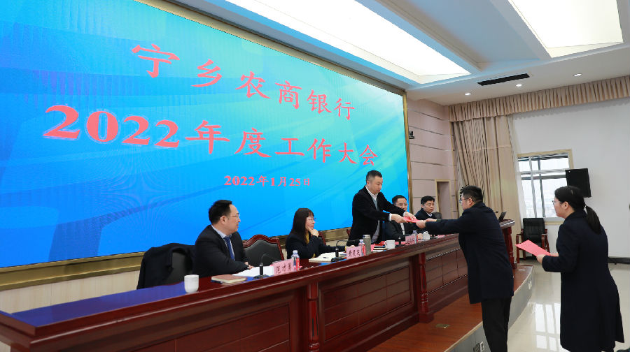 1月25日上午,宁乡农商银行召开2022年度工作会议。行党委书记、董事长刘鸿军作题为《强基拓面 提质增效 奋力开创宁乡农信高质量发展新局面》的工作报告,会议回顾总结2021年工作,分析研判当前经济金融形势,全面部署2022年工作,明确年度主要目标、重点任务、措施要求,切实统一思想、凝聚共识、形成合力,奋力开创宁乡农信高质量发展新局面。行党委副书记黄铁强主持会议,纪委书记、监事长黄灵芝,党委委员、副行长李志平、范才勇出席会议,机关部室正副经理、支行经营班子成员、先进个人代表参加会议。六家村行通过视频形式参加会议。