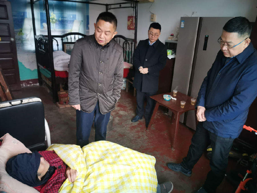刘汉军一行来到困难职工、退休党员晏跃奇家中。晏跃奇现年63岁,因身患阿尔兹海默症,长年卧病在床,生活不能自理。刘汉军与晏跃奇家属亲切交谈,详细了解其家庭生活状况与实际困难,并送去慰问金及新春祝福。