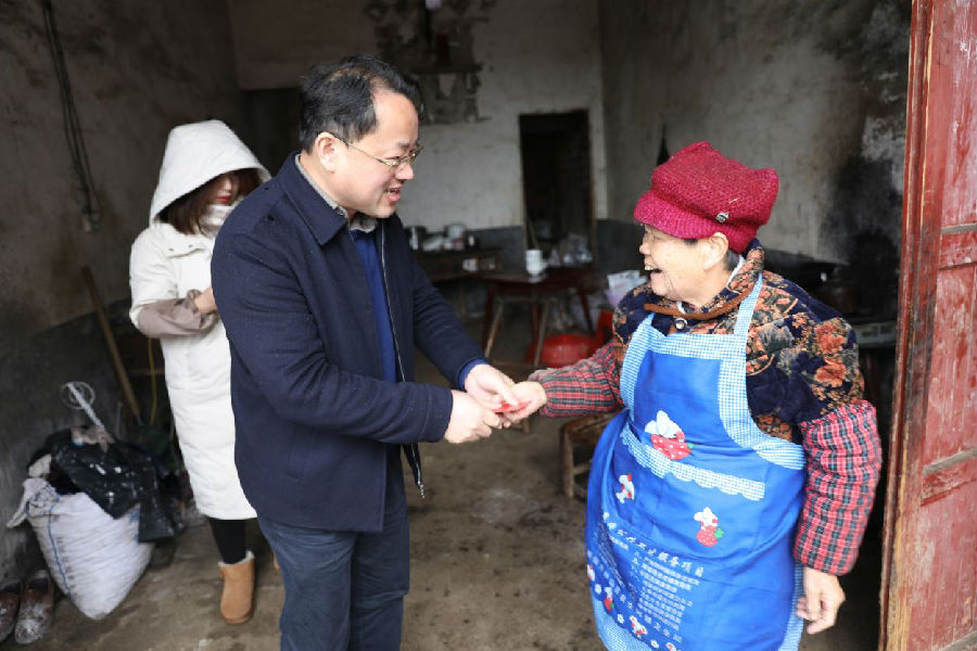 省联社益阳办事处党组书记、主任沈中心上门慰问祥云村困难村民