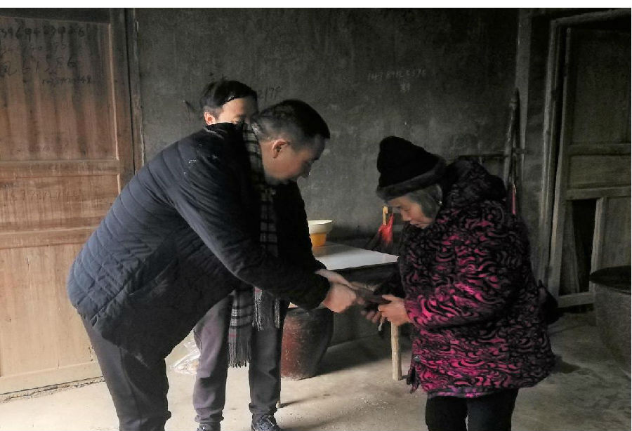 刺骨的寒风,冰冷的雨水,3摄氏度的低温下,省农信联社益阳办事处党组书记、主任沈中心一行脚踩泥泞,一户一户上门走访慰问泉交河镇祥云村重点困难人群、乡村振兴驻村帮扶干部和村支“两委”干部等。