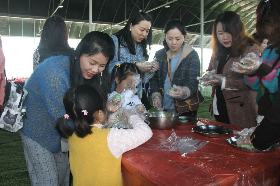 随后,开始了现场制作青团活动。青团是我国春季的一道传统点心,主要由当季的野菜制作而成。“和面、裹馅、捏团”,在工作人员的指导下,现场的男士唱起了主角,大家一起搓一搓、揉一揉,每一道工序都有模有样,一个个散发清香的青团很快就呈现在大家眼前。在场的女士纷纷围观,或拍照记录、或帮忙递东西、或效仿做法,气氛热烈,其乐融融。现场的小朋友还将青团捏成自己喜欢的形状,然后与妈妈一块“打卡”留恋。大家一起“品尝”着春天的味道,在欢声笑语中度过一个难忘的“女神节”。