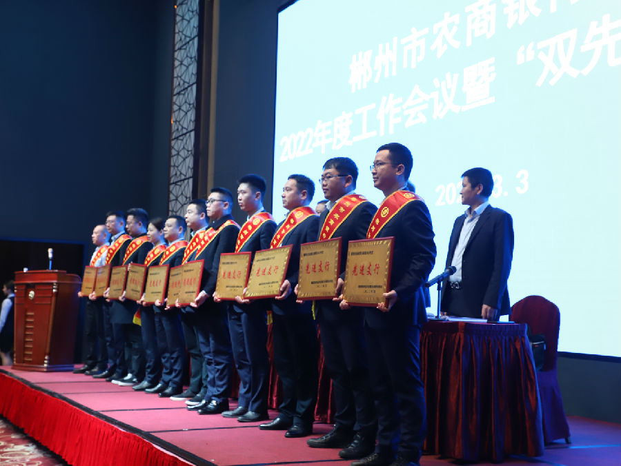 会议对2021年度全市系统综合考核和单项考核先进单位、先进集体以及“十佳”先进个人进行了表彰。先进代表分别从法人行、机关部室、支行行长、客户经理等四个层面进行了典型发言。