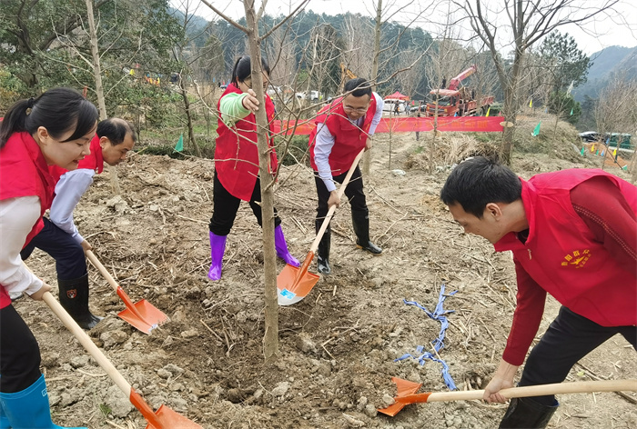 阳春三月,春光正好。在全国第44个植树节来临之际,3月11日上午,南岳农商银行党委带领第一党支部在南岳镇延寿村开展义务植树新时代文明实践活动,以实际行动践行“绿水青山就是金山银山”绿色发展理念。
