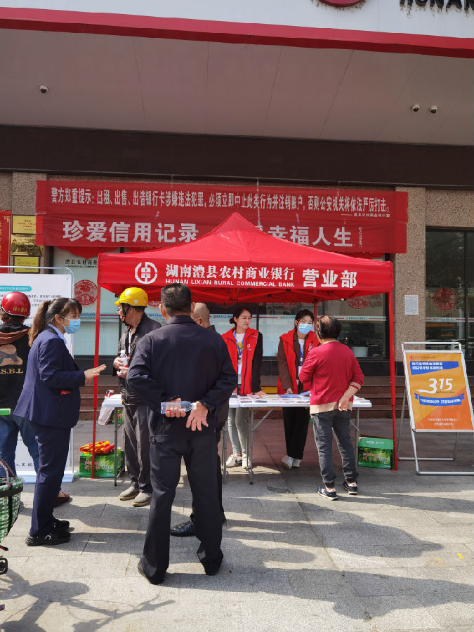 户外活动,清扫宣传“盲区”。3月15日,该行营业部和澧城支行利用网点位于城区中心地带、学区地段,人流多等优势,开展了反电诈现场宣传活动。在网点外搭建帐篷和宣讲台,向过路民众发放折页,为每一位停驻的百姓讲解反电诈、反假货币、反非法集资、反洗钱等金融知识;前往附近学校、社区、广场等人流集中区域,主动发放宣传物料,进行面对面现场讲解。现场活动,该行员工着装规范、精神饱满,吸引了众多群众停驻参与,共发放宣传折页600份,受众人数400人。