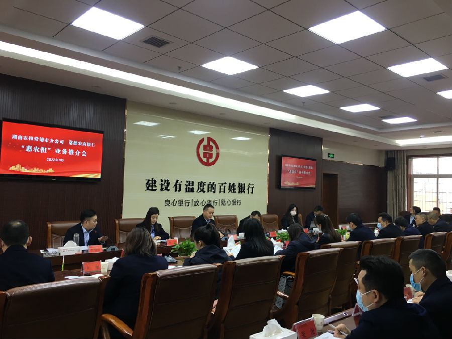 为加大金融服务乡村振兴力度,更好解决新型农业经营主体融资难、融资贵、融资少问题,3月24日上午,常德农商银行邀请湖南农担常德市分公司举行“惠农担”业务推介会,促进双方“合作互信、风险互担、业务互补、客户互荐”,使“惠农担”业务惠及更多三农和小微群体。