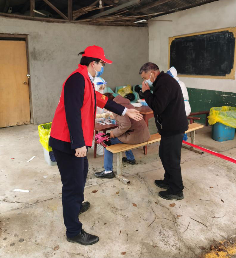 “请有序排队,间隔一米,提前出示健康码。”湘江新区农商银行身着红色马甲的党员同志、入党积极分子带头站在防控斗争第一线,来到坪塘街道、莲花街道协助开展核酸全员检测工作,积极投入长沙市疫情防控攻坚战。
