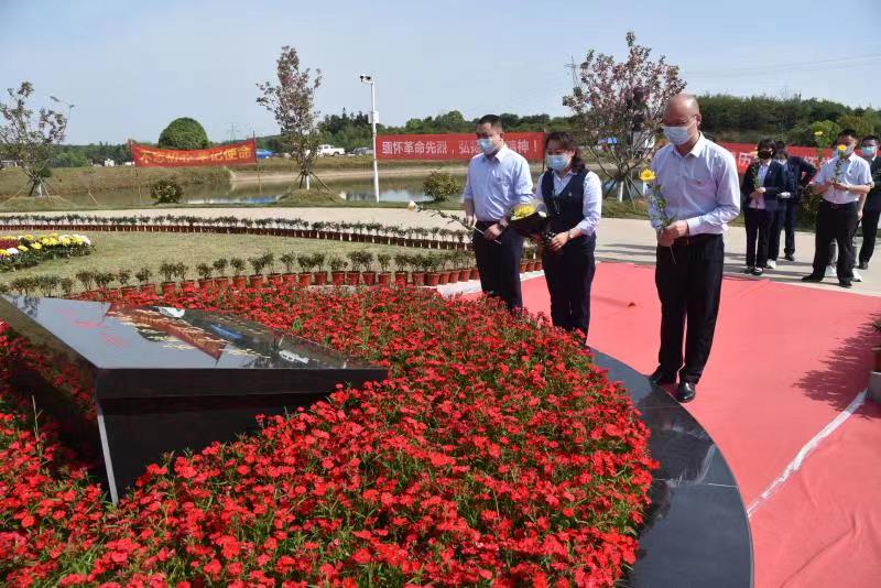 怀着对革命烈士无比崇敬的心情来到烈士陵园,党员们为每座烈士墓敬献鲜花、擦拭墓碑、清理环境,通过参观烈士遗物、集体宣誓等环节来缅怀革命先烈。在陵园革命烈士纪念碑前,大家纷纷颔首默哀向革命先烈致敬,表达了对烈士们的崇高敬意。