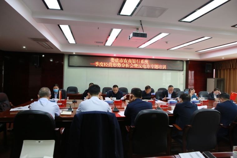 4月14日,娄底办事处组织召开一季度经营形势分析会暨反电诈专题培训。办事处领导、各科室主要负责人、各农商银行董事长、行长及其他相关人员参加了会议。
