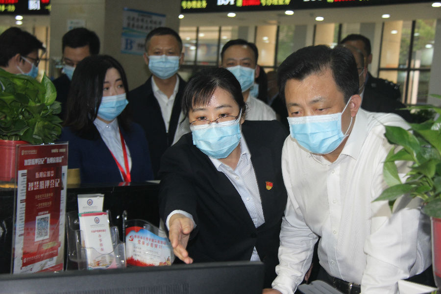 “不动产智慧抵押登记用1页附件材料代替98页借款合同和担保合同,用1个智能环节代替了贷款申请、抵押申请、抵押登记、人工打证和人工领证等5个环节。”不动产登记中心副主任莫玉英一边介绍,一边在手机上现场演示“衡阳快贷”申贷流程。“这确实是非常好的事情”,4月14日下午,衡阳市委书记秦国文调研不动产中心,现场观摩“衡阳快贷”,并作出如此评价。