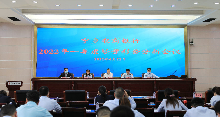 4月22日上午,宁乡农商银行组织召开2022年一季度经营形势分析会议。行党委书记、董事长刘鸿军出席会议并讲话,行党委副书记、行长黄铁强主持会议,行纪委书记、监事长黄灵芝,行党委委员、副行长李志平、范才勇及各部室正副经理、支行正副行长参加会议。