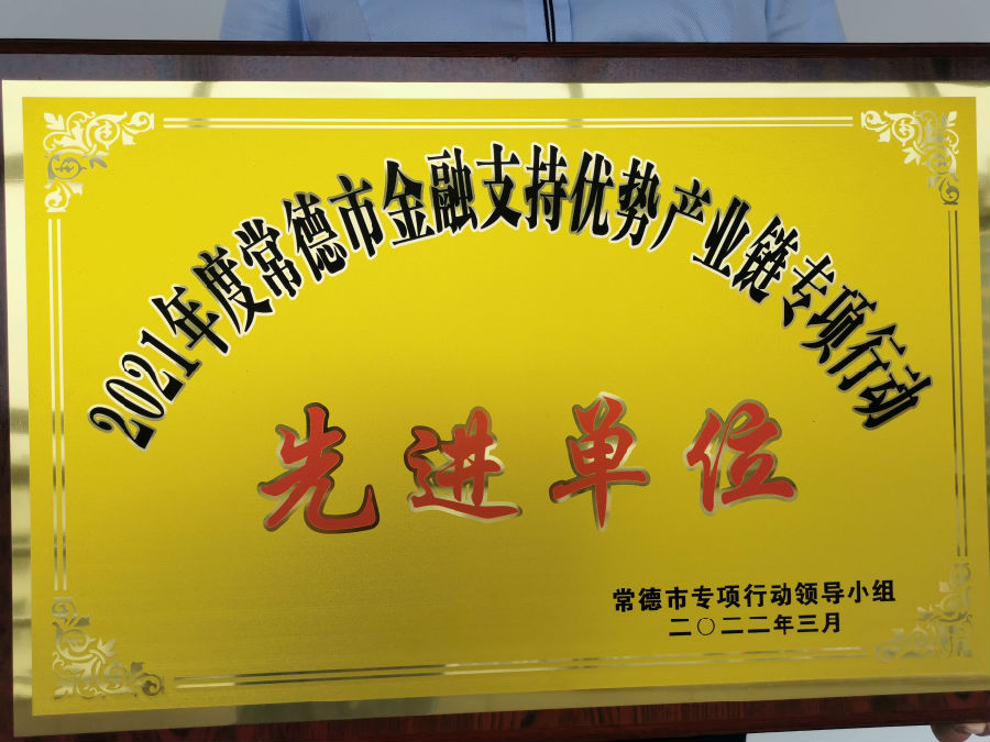 近日,澧县农商银行被人民银行常德市中心支行授予“常德市2021年金融服务优势产业链先进单位”荣誉称号。