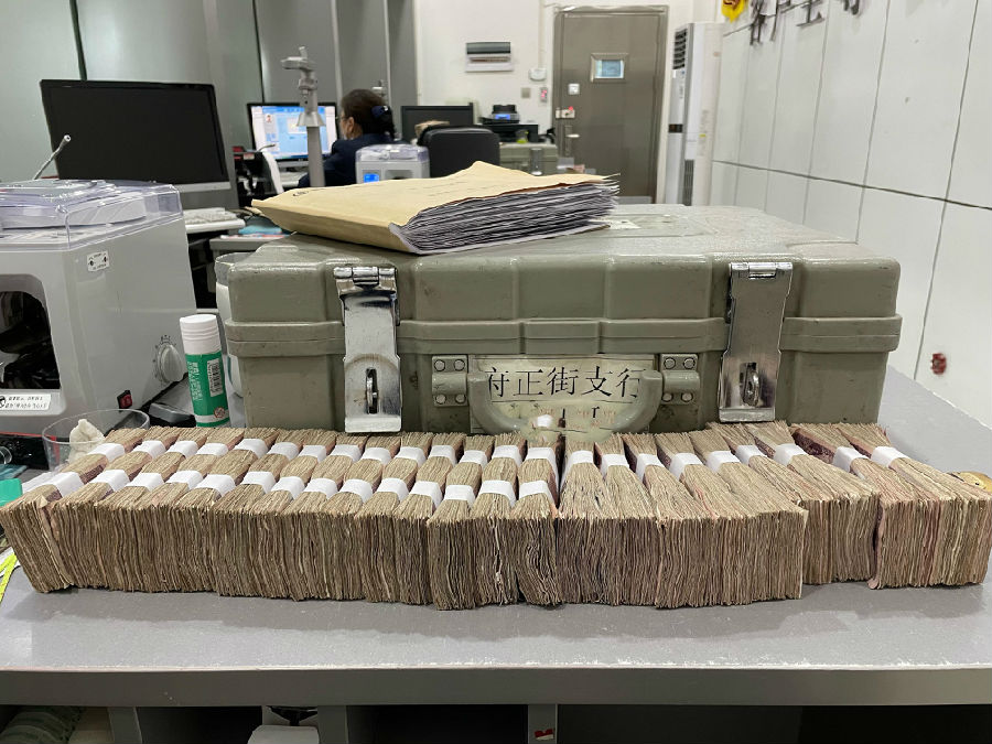 在清点、整理的时候,大堂经理为其递上茶水,当班柜员全程面带微笑,认真、耐心的逐张清点,并把残损的边角补齐。期间,周大姐说道:“我是在菜市场卖菜的商贩,平时收到的零钱较大,虽同周边的居民、商贩兑换了大部分的零币,但5角面额零币的几乎无人愿意兑换,以致越积越多,这下可解决了我的‘大烦恼’”。经过近2小时的清点,清点出5角零币1500元。随后,当班柜员为其顺利办理了存款手续。
