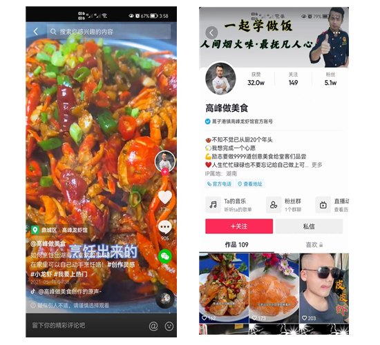 有了这笔贷款资金的加持,高峰把店铺搬到了更为宽敞的街对面,在稳定菜品质量的同时,采取了大胆的营销策略。“现在自媒体这么发达,我们通过短视频、抖音来宣传特色美食,打开了蒿子港之外的市场,才能吸引这么多客人过来。”谈到短视频营销,高峰颇有一番心得。在他和妻子的齐心努力下,龙虾馆的生意更加红火了。