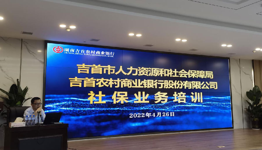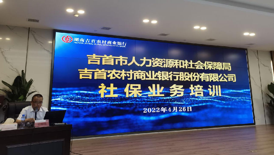 为提升吉首农商银行银行网点社保业务经办服务能力,进一步优化营商环境,4月26日,吉首市人力资源和社会保障局党组成员、副局长宋维德,吉首市社会保险服务中心主任石健,吉首市城乡居民社会养老保险管理服务局局长田代富一行应邀来到吉首农商银行,为该行支行行长、委派会计、综合柜员等48名员工进行社会养老保险经办业务培训指导。