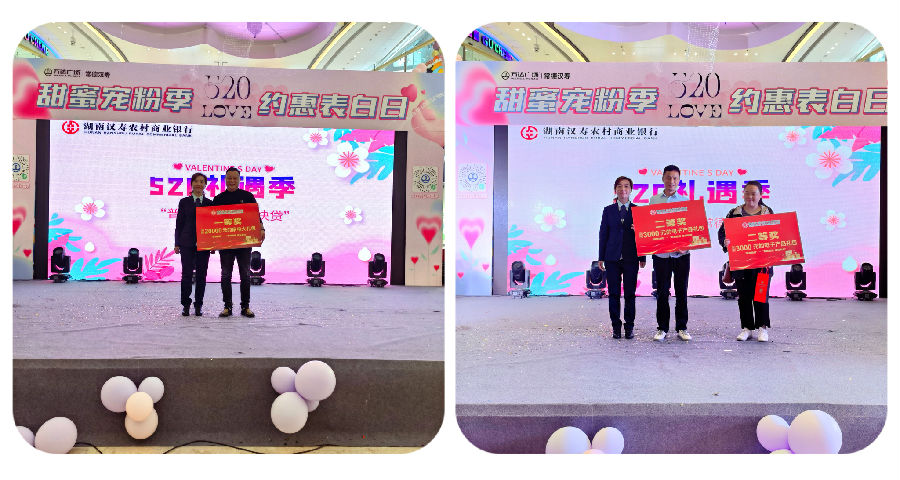 为庆祝汉寿农商银行成立六周年,感谢广大客户的支持,5月20日,汉寿农商银行在万达广场举办了“普惠万家-常德快贷”幸运有礼活动,与现场观众来了一场“浪漫约会”。