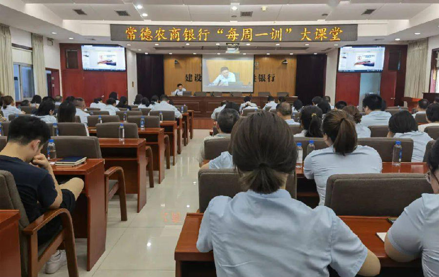 为保证“每周一训”顺利开展,今年上半年,常德农商银行在42家支行开通了远程视频系统,安排各职能部门根据部门职责及条线管理要求轮流授课,员工有专门的学习记录本,认真记录学习内容。总行建立知识题库,随机抽取题目进行线上考试,各机构考试平均分纳入绩效考核,以此全面提高经营管理人才、专业技术人才和技能操作人才三支核心人才队伍的素质能力,为全行高质量发展提供重要的智力支持。