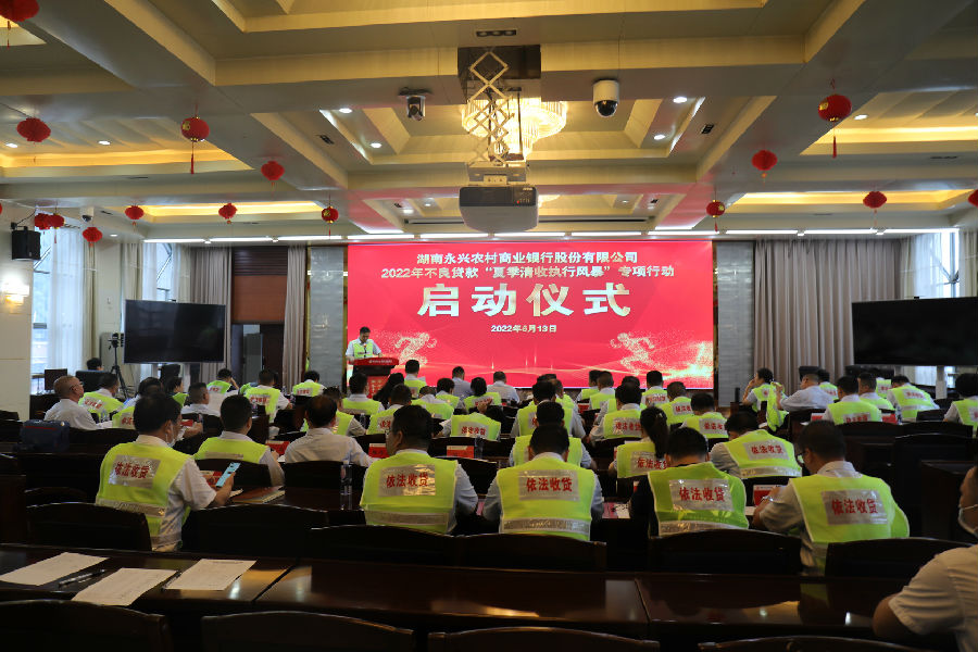 为进一步加强风险处置防控,营造诚实守信的信用环境,打造诚信永兴。6月13日上午,永兴农商银行在八楼会议室举行2022年“夏季清收执行风暴”启动仪式,永兴县人民法院执行局局长熊赟、副局长郑东升出席仪式,此次仪式由行纪委书记、监事长罗荣明主持,行党委班子成员、部室经理、支行行长、普惠队、退休三人组及清收公司、律所代表共计50人参会。