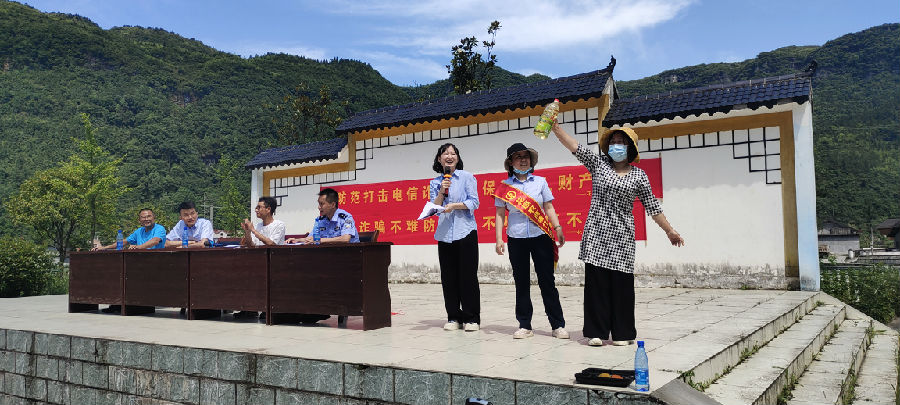 活动前,工作人员通过悬挂横幅、张贴海报、发放宣传资料等多种形式向在场群众宣传防范电信诈骗知识。活动中,分别从政府、公安、电信以及银行四个领域,以实际生活中的案例生动举证,让群众知晓什么是电信诈骗以及如何识别电信诈骗手段。活动最后,开展了答题有礼的互动活动,以抢答和抽奖的形式调动了现场群众的参与积极性,引导大家从答题游戏中获得思考。现场群众积极性颇高,一位近80岁的苗家阿婆也站起来用苗语和年轻人进行了抢答。
