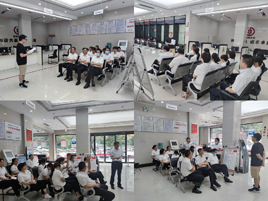 每天早晨,行长和会计会在合规管理部下发的竞赛复习资料目录中选出今日重点学习文件,通过福祥钉发送电子档至工作群内,所有员工白天抽空自学,下班后到营业大厅集中验收。先由一位员工领学重点内容,然后全员就文件内容依次提问,众人抢答,第一个答对者积一分,若无人回答,则提问者积一分。每个月根据积分排名,排名靠前者给予奖励,排名靠后者给予惩罚。