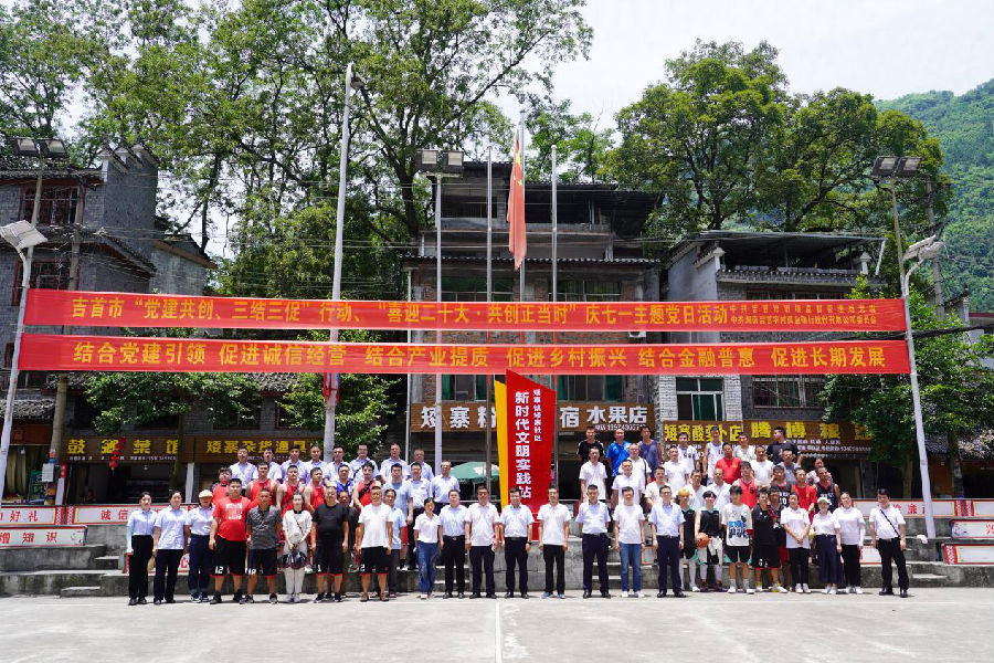 活动现场,共创单位与矮寨镇联点帮扶村共6支队伍共同开展篮球友谊赛。吉首农商银行党委班子成员、吉首市市场监督管理局党组班子成员出席比赛,双方各支部书记、工作人员,各球队队员共计100余人参加比赛。