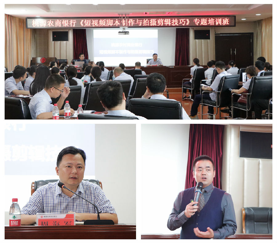 在互联网技术的发展和推动下,微信公众号、视频号、抖音微博等各类新媒体蓬勃发展,为银行营销工作的开展提供了契机。为抢抓新媒体风口,打造桃源农商银行新媒体特色宣传阵地促进业务发展,提升员工短视频拍摄剪辑技能,7月20日,桃源农商银行举办短视频脚本制作与拍摄剪辑技巧专题培训班,机关各部室、支行通讯员及摄影爱好者共计67人参加培训。