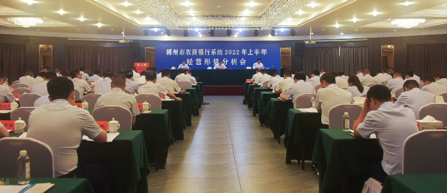 7月19日,郴州市农商银行系统2022年上半年经营形势分析会在安仁召开,会议传达贯彻了省联社半年度工作会议精神,分析和总结了全市系统上半年工作情况,并对下半年工作进行了安排部署。办事处党组书记、主任康见闻出席会议并作重要讲话,党组成员、纪检组组长、副主任陈利军主持会议,党组成员、副主任雷青龙通报了全市系统2022年上半年业务经营情况,办事处各科室负责人,辖内农商银行党委书记、董事长、行长、监事长,安仁农商银行党委班子成员、部室经理、支行行长共计77人参加会议。