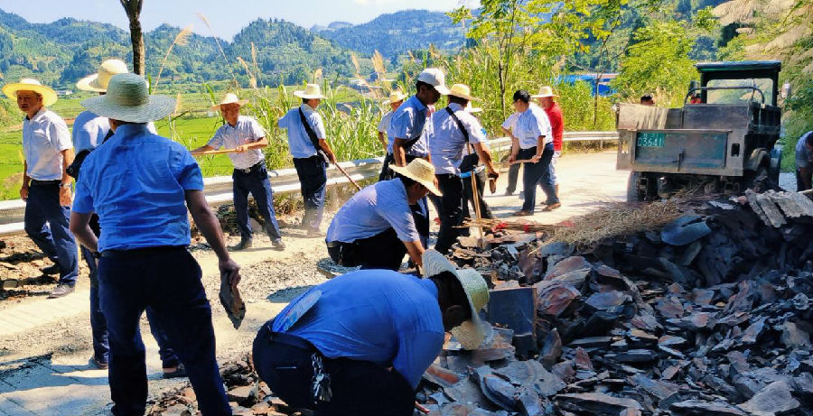 活动中,全体党员干部充分发挥不怕脏、不怕累、不怕苦的精神,顶着烈日,扛起锄头、铲子,拿着扫帚等工具,对村组干道两旁的滑落沙石、房前屋后、沟渠的垃圾进行了清理。大家分工协作、干劲十足,有的同志负责将滑落的沙石撮到铲子里,有的同志徒手搬运石块,有的负责清扫、捡拾垃圾……活动开展井然有序,在大家的共同努力下,一条条干道变得更“宽”、更干净了、一个个庭院变的更整洁了,村庄面貌焕然一新。活动当天,共清扫村组干道5千米、清理滑坡沙石8处、垃圾清运6车。