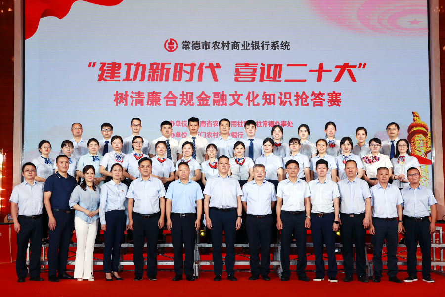 8月29日,常德市农商银行系统“建功新时代 喜迎二十大 树清廉合规金融文化”知识抢答赛在石门县青和酒店圆满收官。本次活动由省农信联社常德办事处主办、石门农商银行承办,来自常德市辖内8家农商银行的各参赛代表队上演知识、技巧、心态的综合较量和精彩对决。省农信联社常德办事处党组书记、主任刘汉军出席活动。