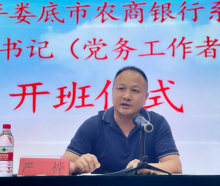 娄底办事处党组书记、主任严桦做开班讲话。首先他代表娄底办事处党组向韶山市委党校表示衷心的感谢,向前来培训的学员表示热烈的欢迎。他指出,举办党支部书记(党务工作者)培训,一是落实全面从严治党战略的需要。治国先治党,治党务必从严,实施全面从严治党战略,最基础工作就是要抓党支部建设;二是落实意识形态领域教育的有力抓手。作为支部书记和党务工作者,要从更高的站位深化思想认识,将其作为一项重大政治任务抓紧抓实;三是为实现全市农商银行系统高质量发展的需要。开展党支部书记培训,要提高开展党建工作的自觉性和主动性,提高党建工作质量,从而达到促进业务发展,推动改革前进的目的。