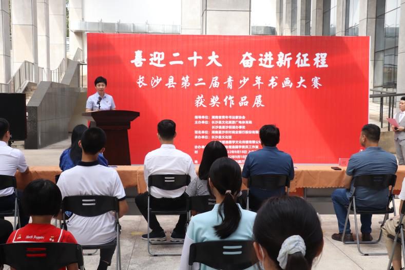 9月18日,由湖南省青年书法家协会指导,长沙县文化旅游广电体育局和长沙县星沙街道办事处主办,星沙农商银行冠名的“喜迎二十大 奋进新征程”长沙县第二届青少年书画作品大赛颁奖暨获奖作品展览开幕式在长沙县文化馆举行,星沙农商银行党委副书记、行长邵洁玉出席活动,并作开幕式致辞,标志着获奖作品展正式开展,展览将持续至9月26日。