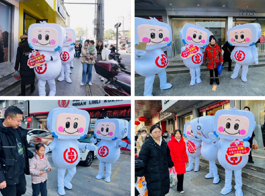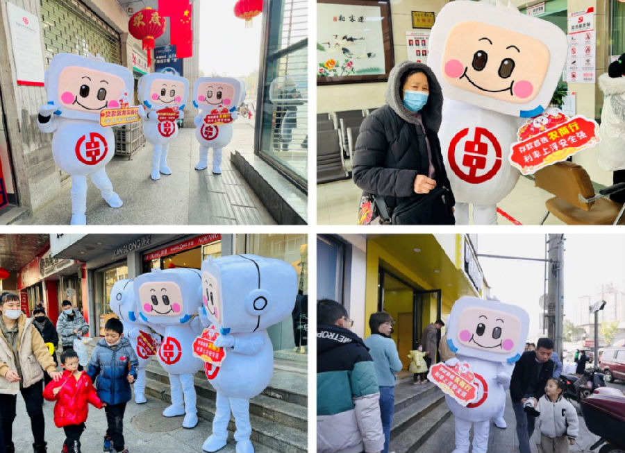 活动中,该行将12名宣传人员分为2组,其中,一组工作人员身穿福祥宝宝人偶服,沿着县城主街道,途经营业部、城关支行、安福支行、望城支行及人流量大的超市门口开展宣传;另一组工作人员配合“福祥宝宝”,对围观群众及过往路人派发业务产品宣传折页和新年福包,积极推介存贷款业务。在“福祥宝宝”的带领下,工作人员高举宣传标语牌,手拖移动音箱,不断播放着新春喜庆音乐,走进人口密集的街头巷尾,吸引了广大群众的围观。