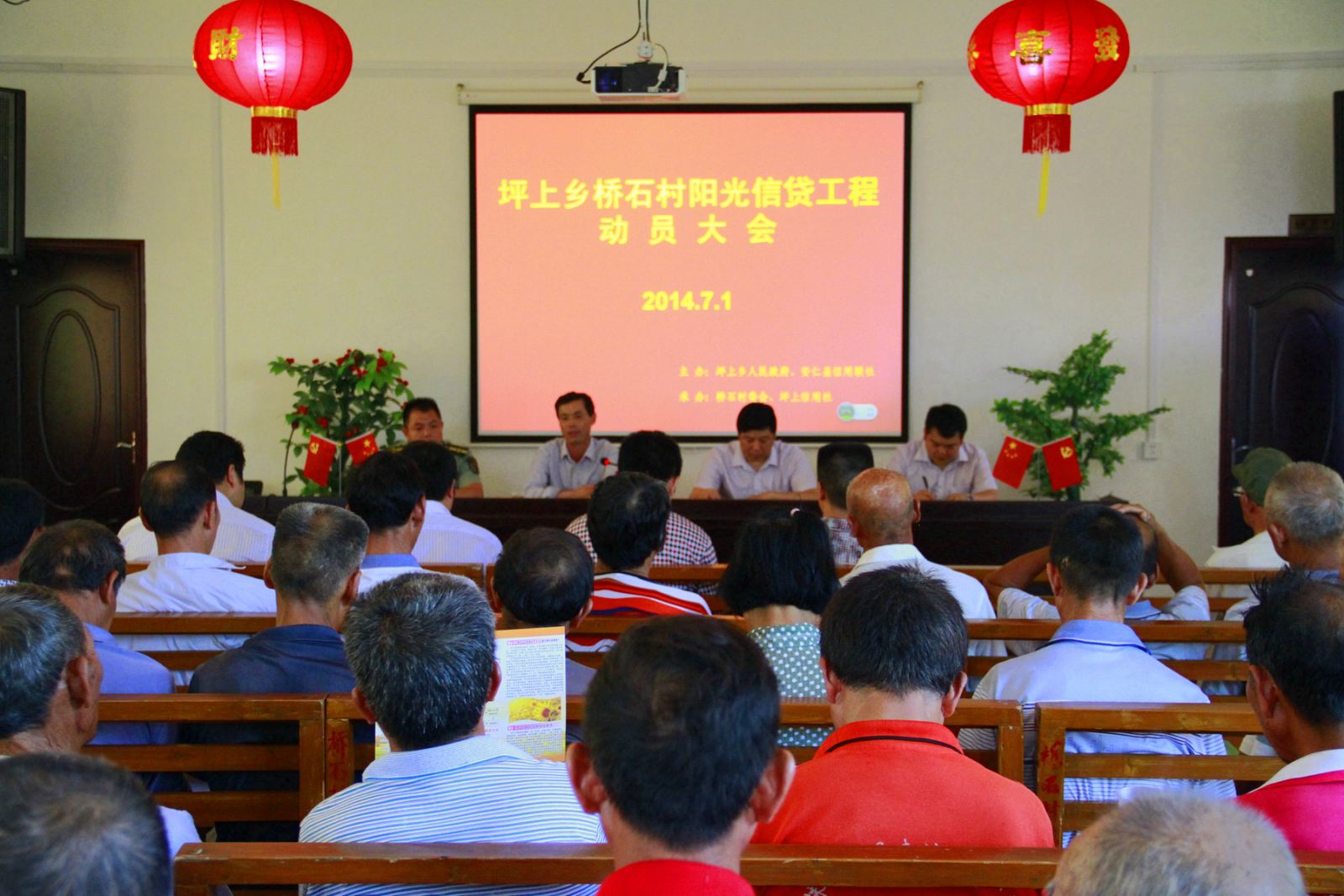 为深入推进“三大工程”,让广大农户真切感受到农村信用社“进门不烦,办贷不难,手续不繁”的优质服务,切实改善农村金融生态环境,今年5月初,安仁联社选择在桥石村启动阳光信贷工程农户公开评级授信试点工作。7月1日在该村召开了动员大会,围绕试点工作的有效推进出台了一系列措施: