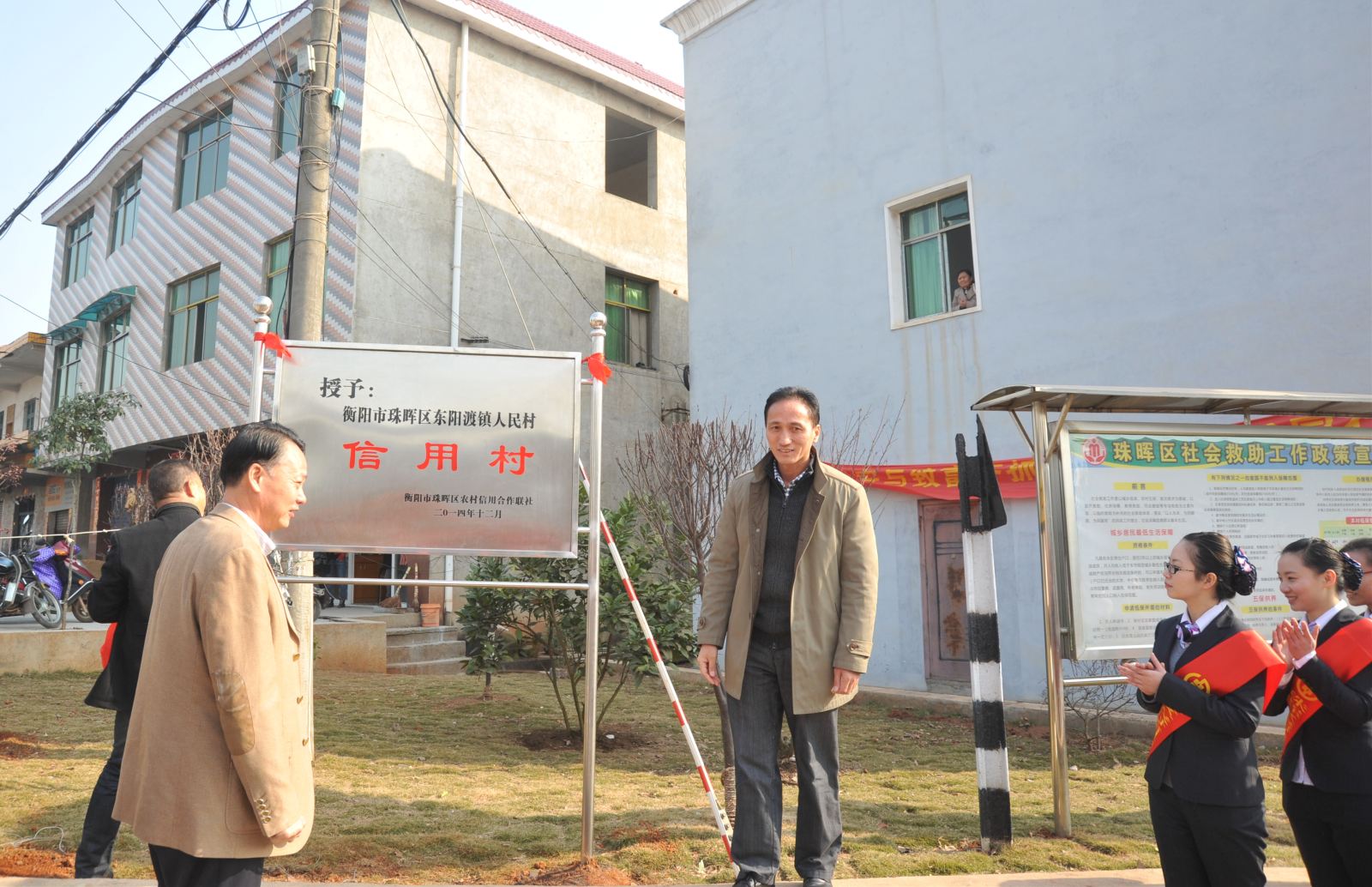 12月31日,在欢快的腰鼓声中,衡阳办事处主任和珠晖区委书记共同揭开了珠晖区东阳渡镇人民村“信用村”牌匾的“面纱”,衡阳市城区首个“信用村”正式落户。