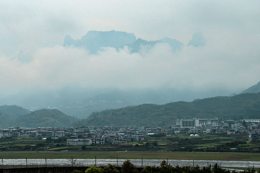 雨水给天门山换了一幅新面孔。流动的云雾,将天门山变幻成一幅山林水墨画,壮阔且诗意。