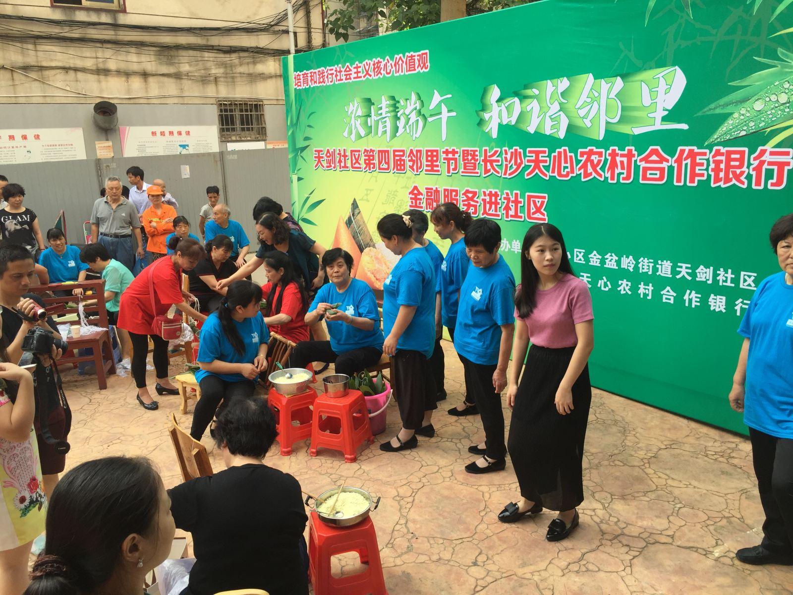 6月12日,天心区天剑社区举办了“第四届邻里节暨天心农合行金融服务进社区”活动。该活动由天心农合行天剑分理处全力赞助与策划,节目丰富、贴近群众,大合唱、包粽子两项节目更是点燃前来参加比赛和观赛的数百位社区居民的热情,得到社区居民的喜爱和认同。天剑分理处及时抢抓机会,在活动过程中向社区居民大力宣传该行的产品及服务,比赛中员工也积极参与互动,宣传活动取得了较好的效果。截止活动结束,天剑分理处当天新增天剑社区居民定期存款80余万元,电子银行各项业务均有不同程度新增。
