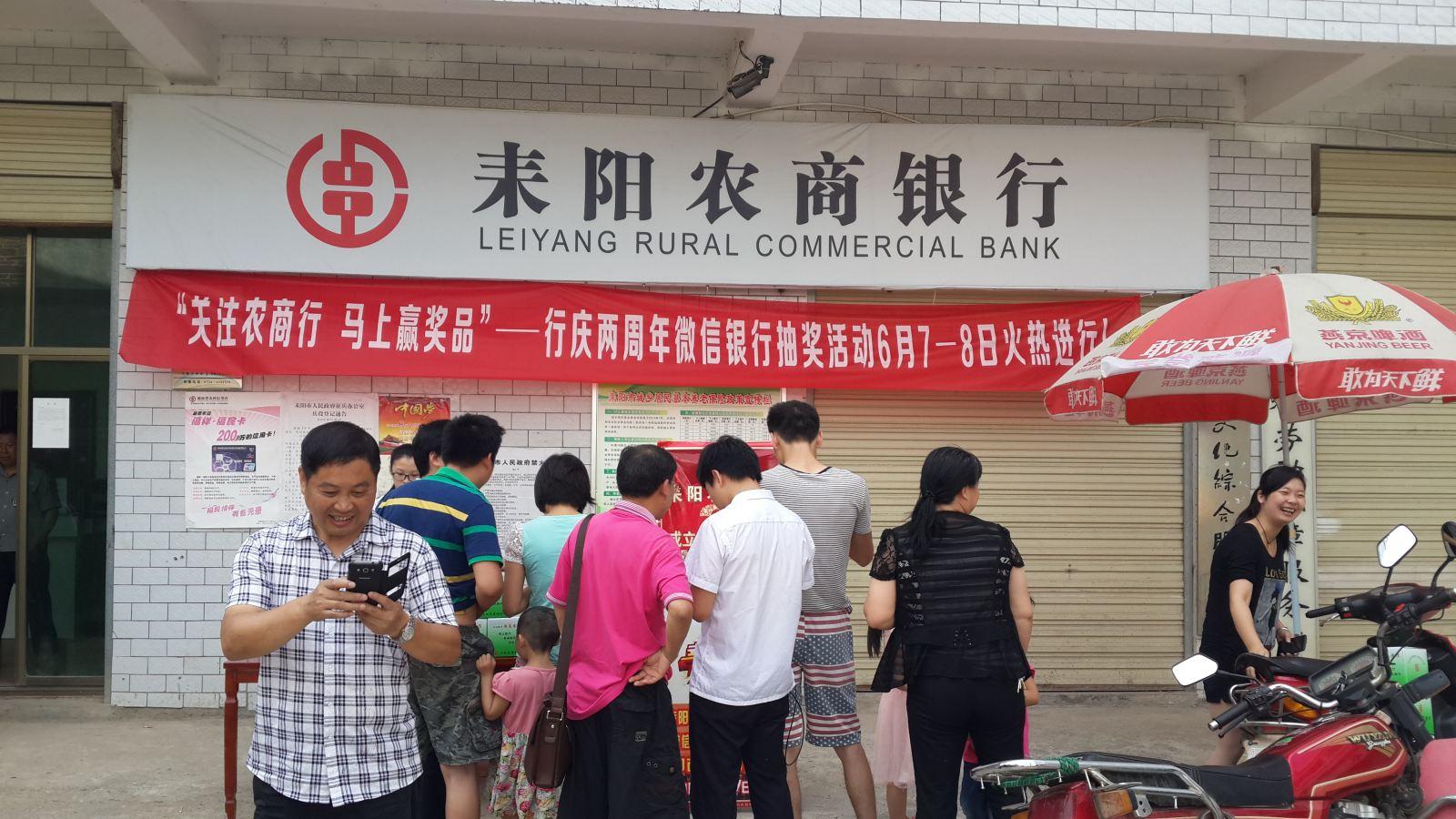 为感谢社会各界对耒阳农商银行的关心与支持,在成立两周年行庆之际,耒阳农商银行隆重举办“关注农商行,马上赢奖品”抽奖活动。6月7日至8日,前往该行各网点参加大转盘抽奖活动的市民络绎不绝,中奖奖品分为一、二、三等奖及纪念奖,奖品分别为价值500元银水杯一个、价值200元移动充电宝一个、价值100元报时器一个、价值10元的一次性水杯一盒。据不完全统计,仅2天时间,参与抽奖的市民达68000余人,发放业务宣传手册35000份、宣传纸杯18万只,充分展示耒阳农商银行的社会企业形象,进一步提升了该行的知名度和名誉度,深受广大市民好评。