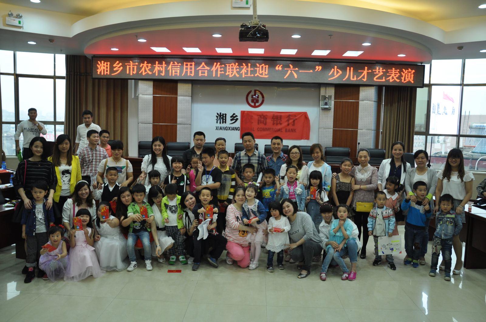 2015年5月24日上午,湘乡联社迎“六一”少儿才艺表演在联社七楼会议室举行。参加表演的都是联社各社(部)选送过来的小朋友,其中年龄最大的13岁,最小的3岁。联社党委委员、副主任冯毅在活动开始前致了祝贺辞,并同小朋友和家长们共百余人一同观看了整场演出活动。