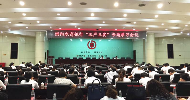 5月21日晚上,浏阳农商银行组织开展“三严三实”专题学习教育活动,行党委书记罗成林结合该行实际,以践行“三严三实”要求,巩固和拓展教育实践活动成果,积极转变工作作风为主题,亲自为党员干部上了一堂生动的党课。营业部、机关全体员工以及行领导班子成员共计96人参加了学习。活动由党委副书记李寿树主持。