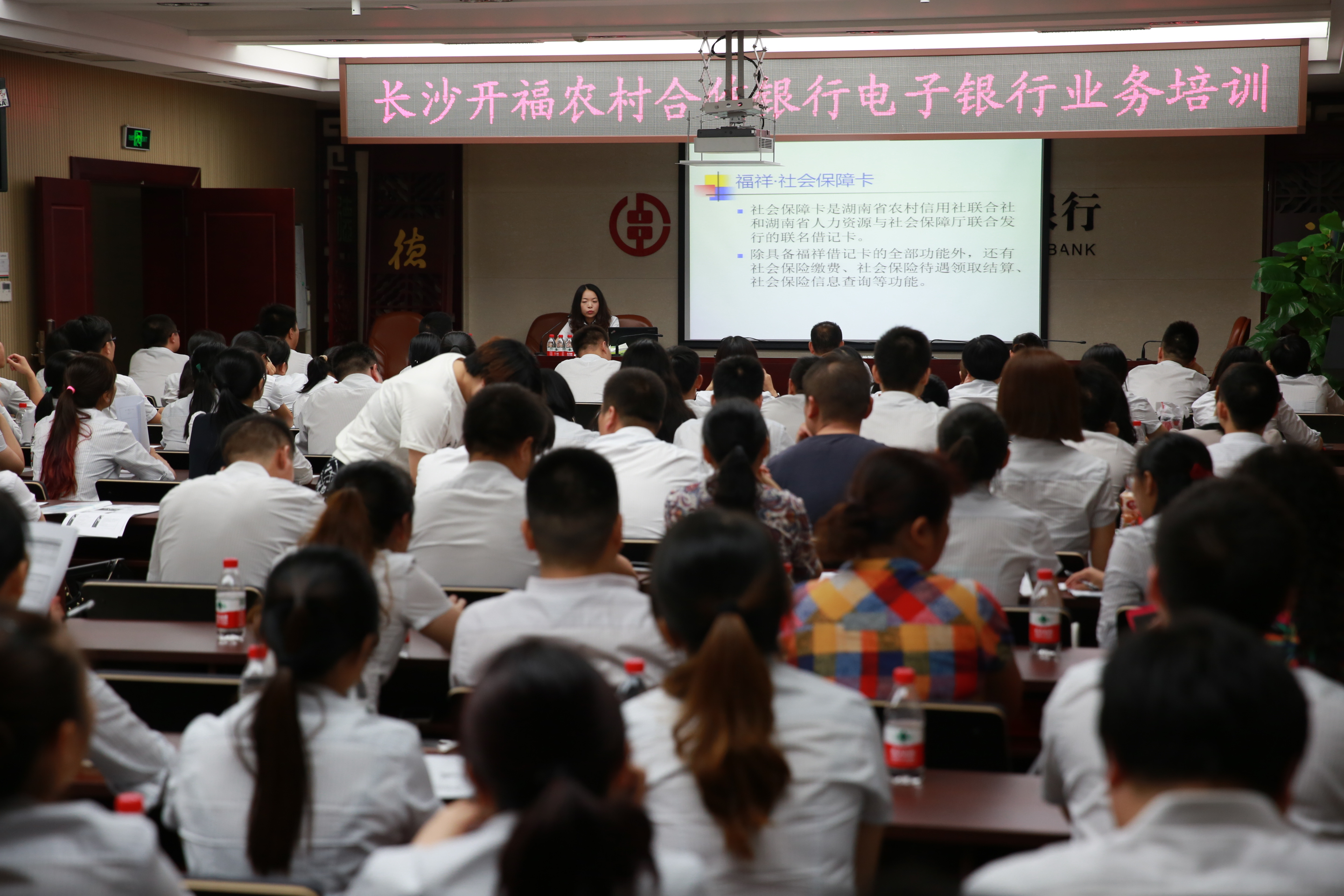 为配合省联社微信银行上市推广工作,8月20日,长沙开福农村合作银行分两个批次对全行员工开展了电子银行业务培训。本次培训对湖南农信微信银行的各项业务功能、特点以及操作流程进行了重点讲解。同时,培训还要求全体员工关注湖南农信微信银行公众号和湖南农信信用卡平台公众号,积极参与两个公众号的活动,要求全行所有员工通过各种渠道对我省微信银行进行宣传。