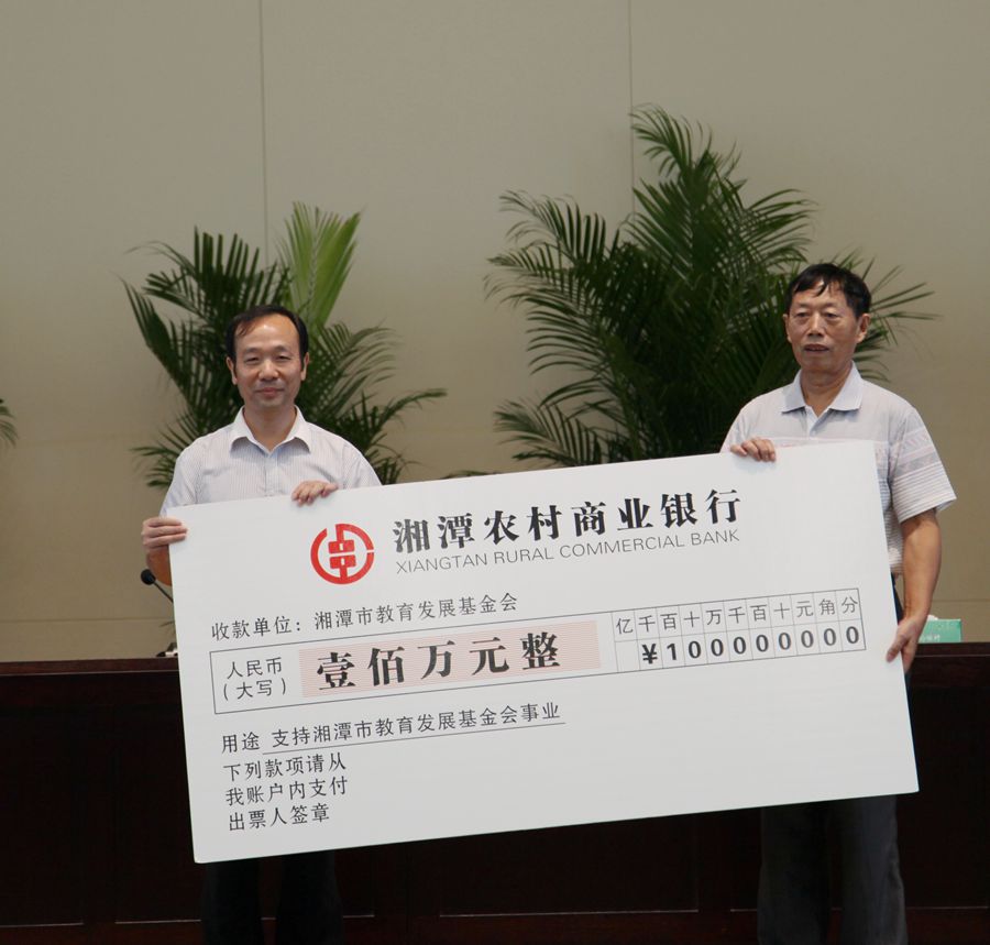 湘潭市教育发展基金会副理事长肖克俭指出,湘潭农商银行自2012年成立,每年向市教育发展基金会捐款100万元,帮助困难大学新生顺利迈入大学门槛,这种善行义举充分体现了湘潭农商银行回报社会,关心学生,关心教育,关心湘潭社会发展的情怀,年年被市教育发展基金会授予"爱心助学模范单位"称号。得到了市委、市政府的充分肯定和社会各界的普遍赞扬!