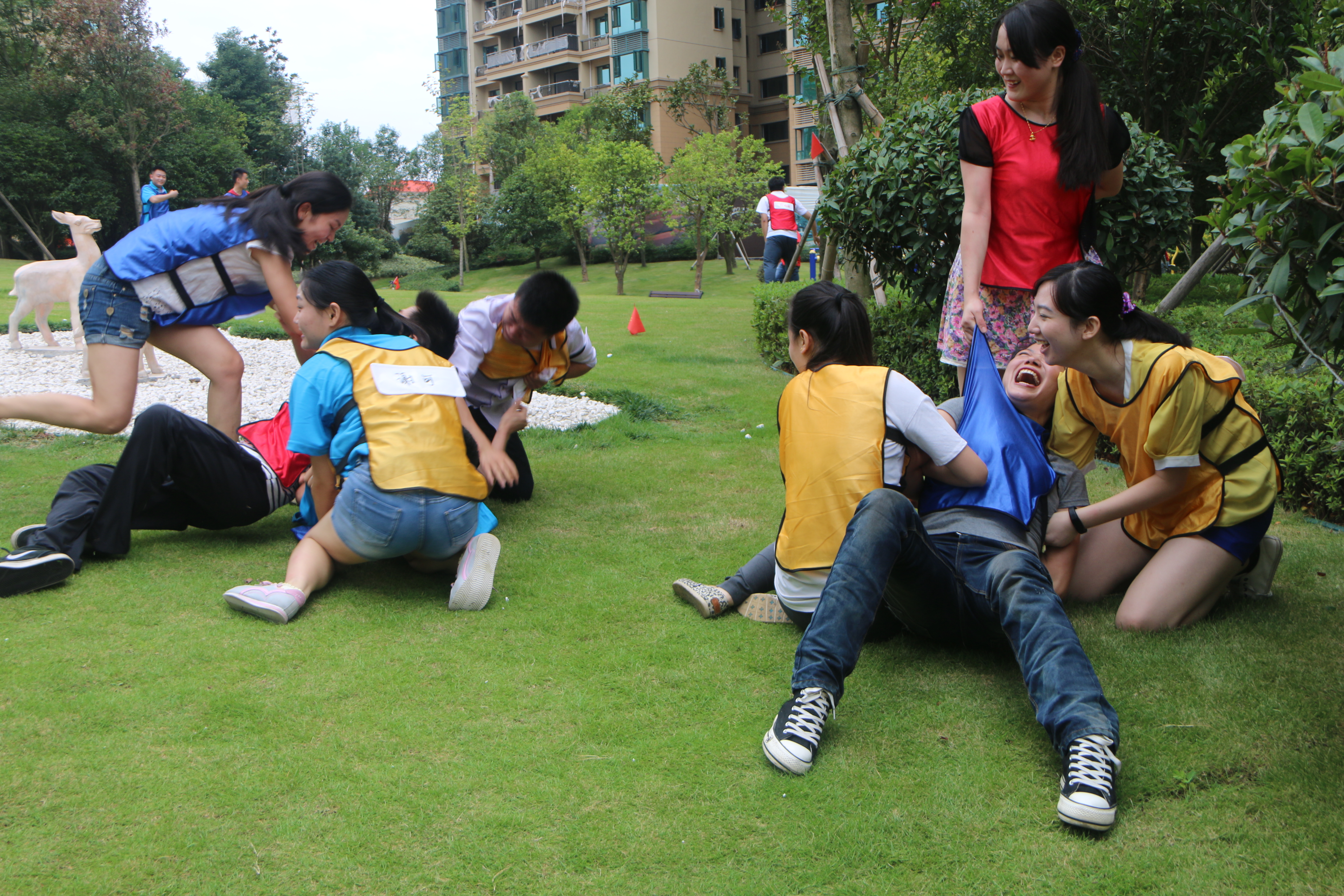 此次活动共有“撕名牌”、“十人十一足”、“团队跳绳”、“袋鼠运球”、“拾贝”、“瞎子背瘸子”等项目。全场根据各项比赛积分总和排名确定冠军、亚军、季军分别给予奖励。