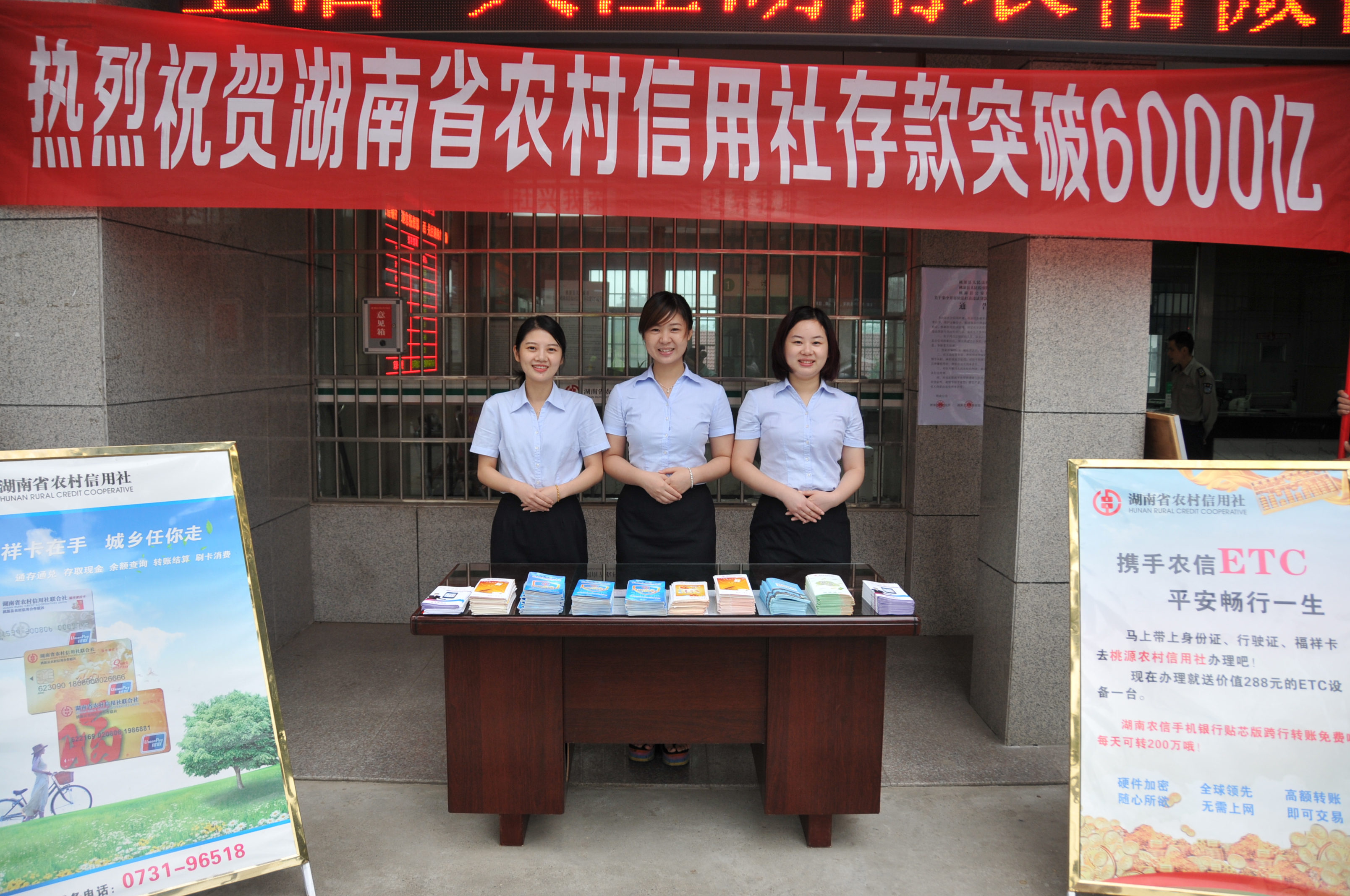 “大伯,我们全省农村信用社存款已经突破6000亿元了,快来看看我们新开办的手机银行、微信银行、ETC业务吧,现在办理还送LED贴心小手电哦……”9月18日,国家4A级风景名胜区桃花源的集镇上迎来了几位特殊的金融服务志愿者,他们是桃源联社的流动业务宣传小分队,整个上午,小分队穿梭在集市的人流中,现场派发手机银行、微信银行、ETC、金融知识宣传折页400余份,接受业务咨询190余人次,在做好全省农村信用社存款突破6000亿元宣传的同时推介了新业务,传播了新知识,提升了新形象,收到当地广大群众好评,掀起了办金融业务,进农信的高潮。