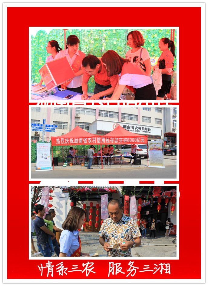 全面铺开媒体造势,广告宣传“入人心”。 9月9日,完成与合作媒体鼎城电视台的广告内容更换,冠名黄金时段的《鼎城新闻》栏目,并插播为期3个月的片头10秒专题广告。9月11日,完成与合作媒体鼎广电台FM106.8的广告内容更换,以每天10次,每次20秒的频率,连续3个月滚动播出专题音频宣传广告。与鼎城电信合作,在自驾游旅游黄页上刊登相关宣传广告,主要面对辖内私家车主投放,预计投放量将达6万余份。同时,已与常德日报鼎城记者站衔接,对联社各类“6000亿宣传”专题活动进行跟进报道,形成了报纸有文字、电台有声音、电视有图像的立体宣传氛围。