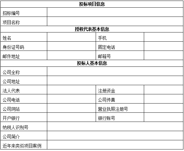 备注:外地或者本地不能来现场报名的投标人可以将“投标人基本情况表”完善后,连同“单位介绍信”、“标书款转账底单”一起扫描发送至hnglzb@163.com,招标代理机构将及时办理报名登记。
