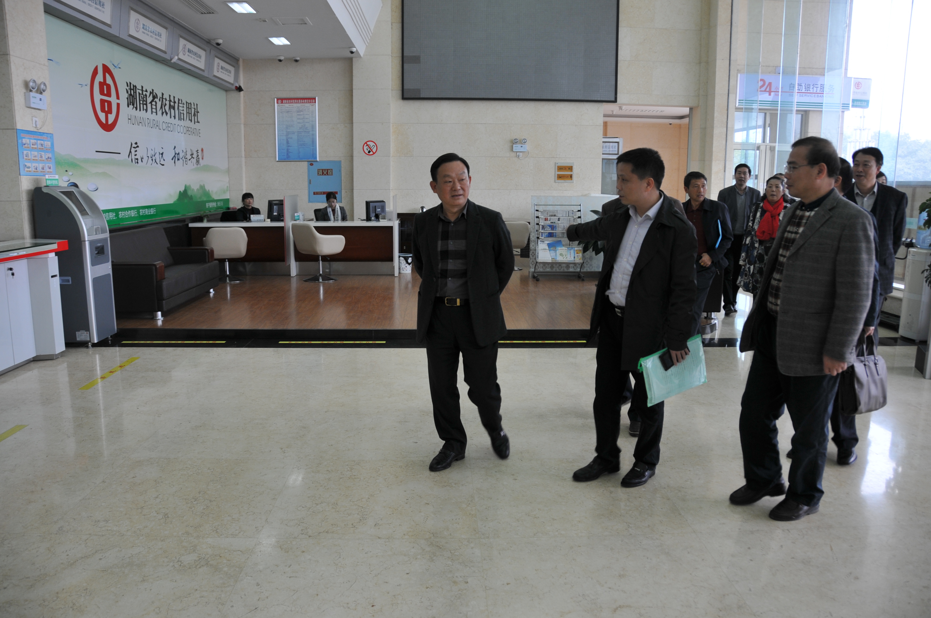 调研期间,代表团一行先后参观了桃源联社营业部自助银行设备服务区,功能化的营业大厅,以及联社视频监控中心。