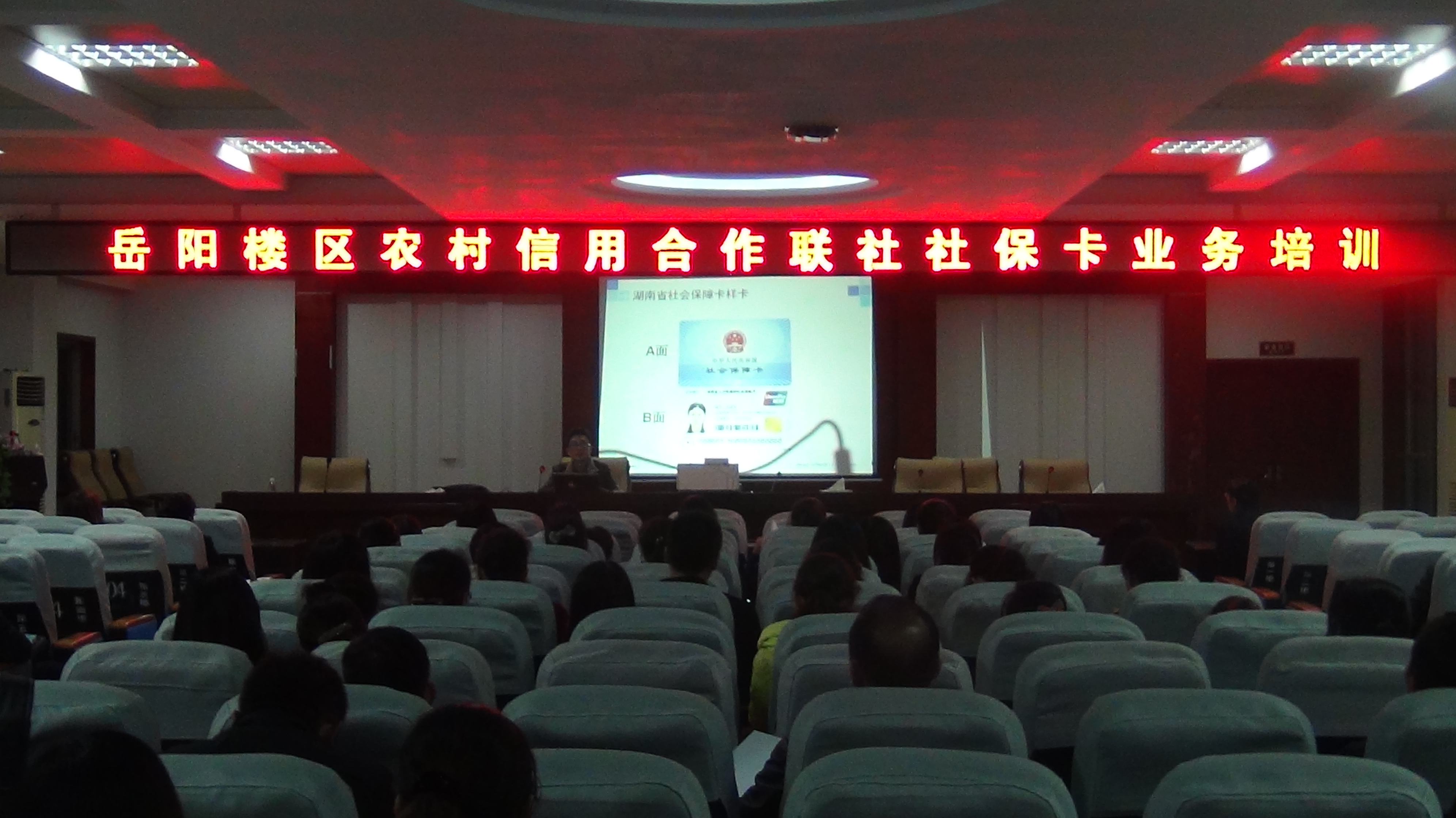 为落实岳阳市社会保障局要求,做好社保卡发行工作,11月18日,岳阳楼区联社举行了社保卡业务的第二期培训,联社分管领导、业务拓展部负责人、各信用社内勤主任、主办会计、综合柜员及社保卡管理系统开发公司经理共计100余人参加。