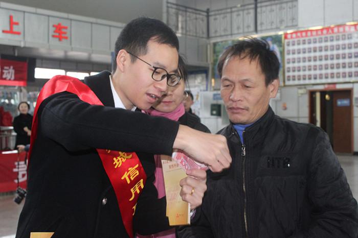 活动现场悬挂了反假宣传横幅,设立了宣传展架,布放了宣传资料,候车厅巨幕视屏滚动播放了反假宣传片,由基层信用社抽调的5名“反假”小分队成员走进人群为大家发放反假宣传手册,介绍新版人民币的七大防伪特征,特别是精心设计的现场有奖趣味问答环节,吸引了大批候车乘客驻足参与,不仅普及了反假知识,现场气氛也十分活跃,受到了广大群众的欢迎。